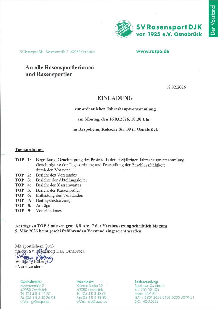 Einladung zur ordentlichen Jahreshauptversammlung