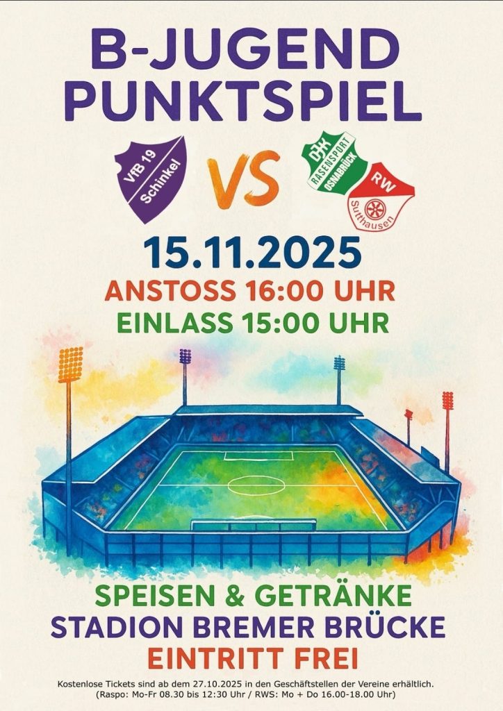 Ein ganz besonderes Highlight steht unserer B2-Jugend der Spielgemeinschaft Raspo-Sutthausen bevor: Am Samstag, den 15. November 2025, um 16:00 Uhr, bestreitet die Mannschaft ihr Punktspiel gegen […]