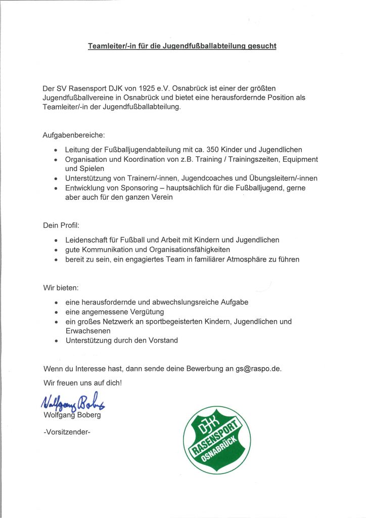 Teamleiter/in für die Jugendfußballabteilung gesucht